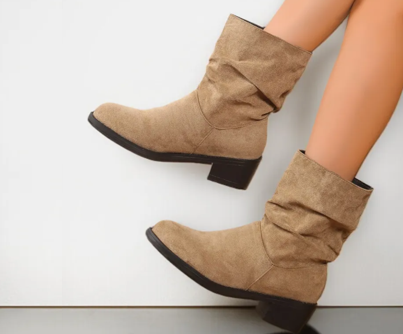 レディーススエード太ヒールショートブーツ